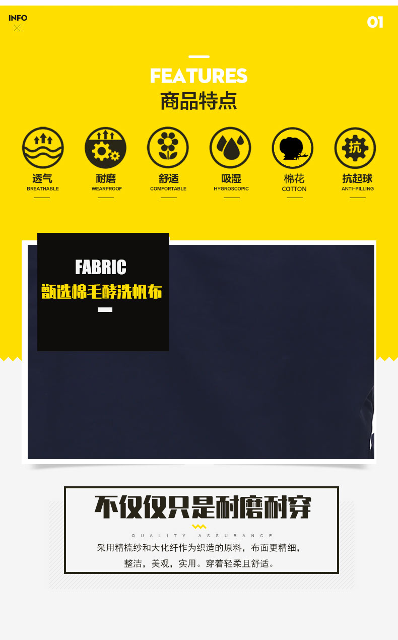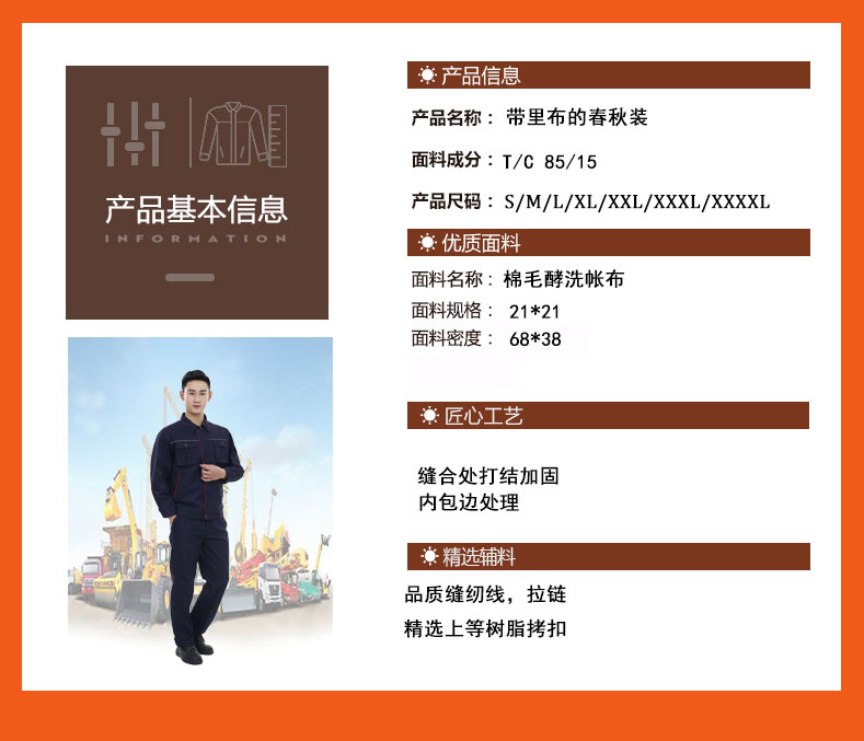 春秋裝工作服 GZFCQZ-5 ,采用棉毛酵洗帆布。