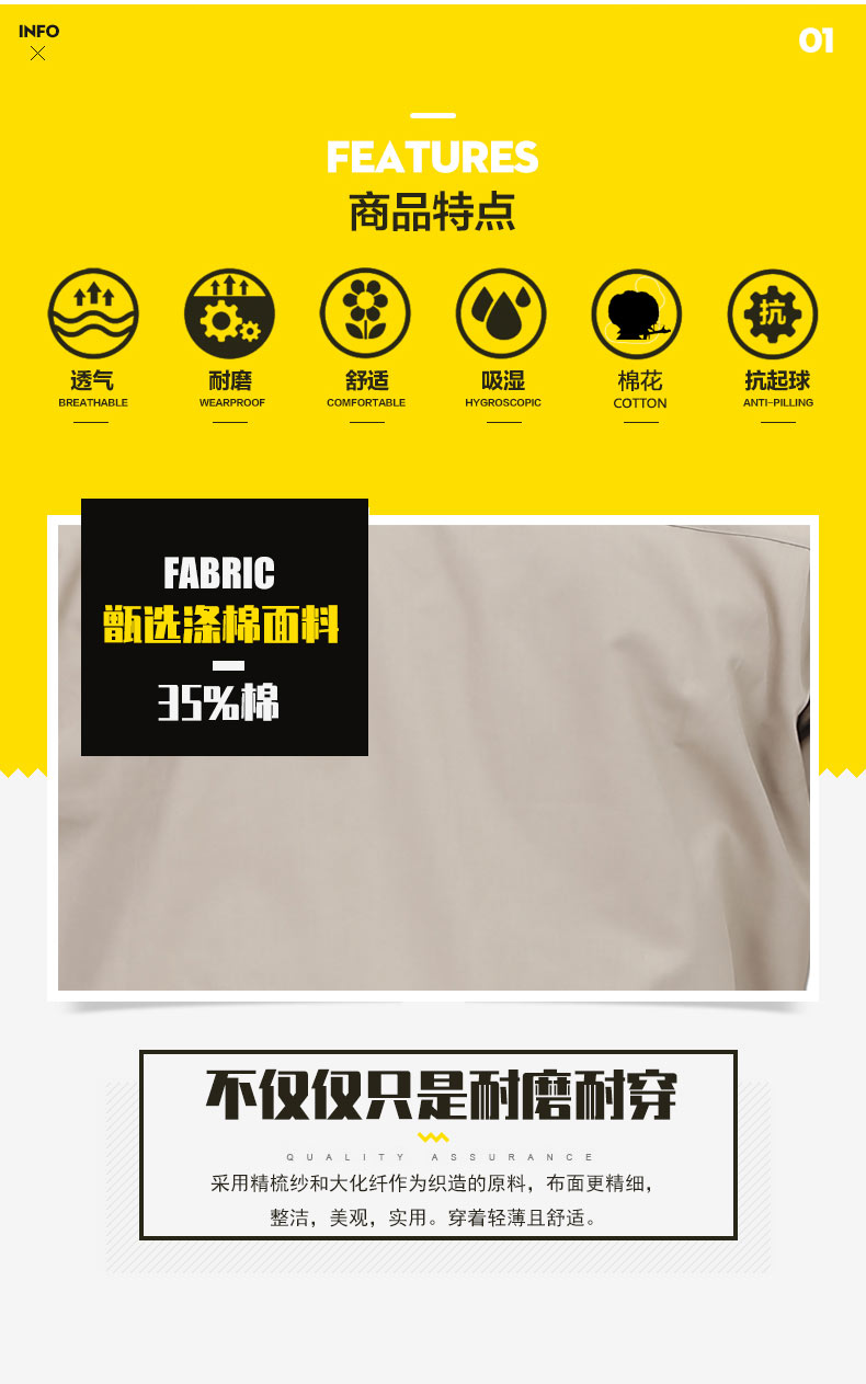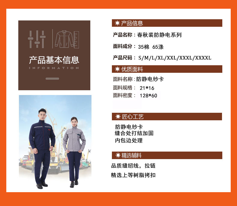 春秋裝工作服 GZFCQZ-11 采用防靜電紗卡面料做。