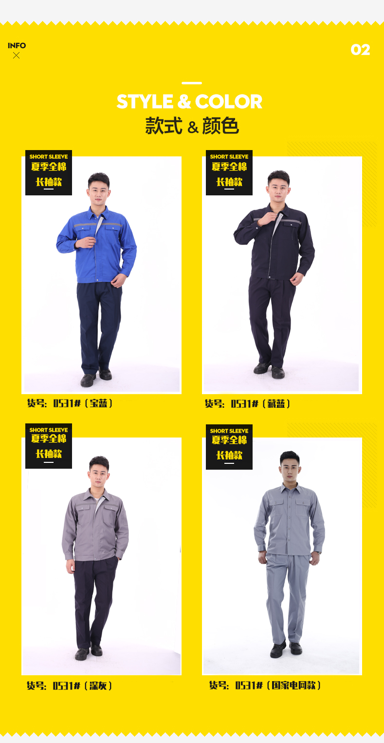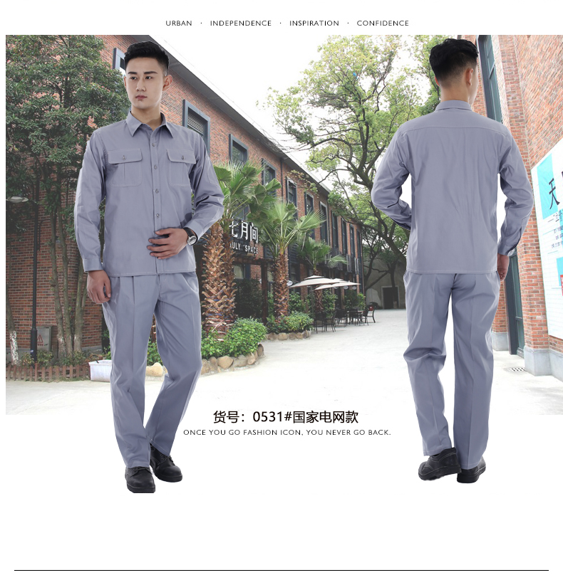 夏裝工作服 長(zhǎng)袖工作服 GZFXZ-1,這款采用全棉面料做的,適合各類崗位上需要長(zhǎng)袖的工裝.當(dāng)然我們這除了電網(wǎng)款連褲子都是全棉外,其他的上衣是本棉,褲子是滌棉面料.當(dāng)然也可以訂做工作服款式.