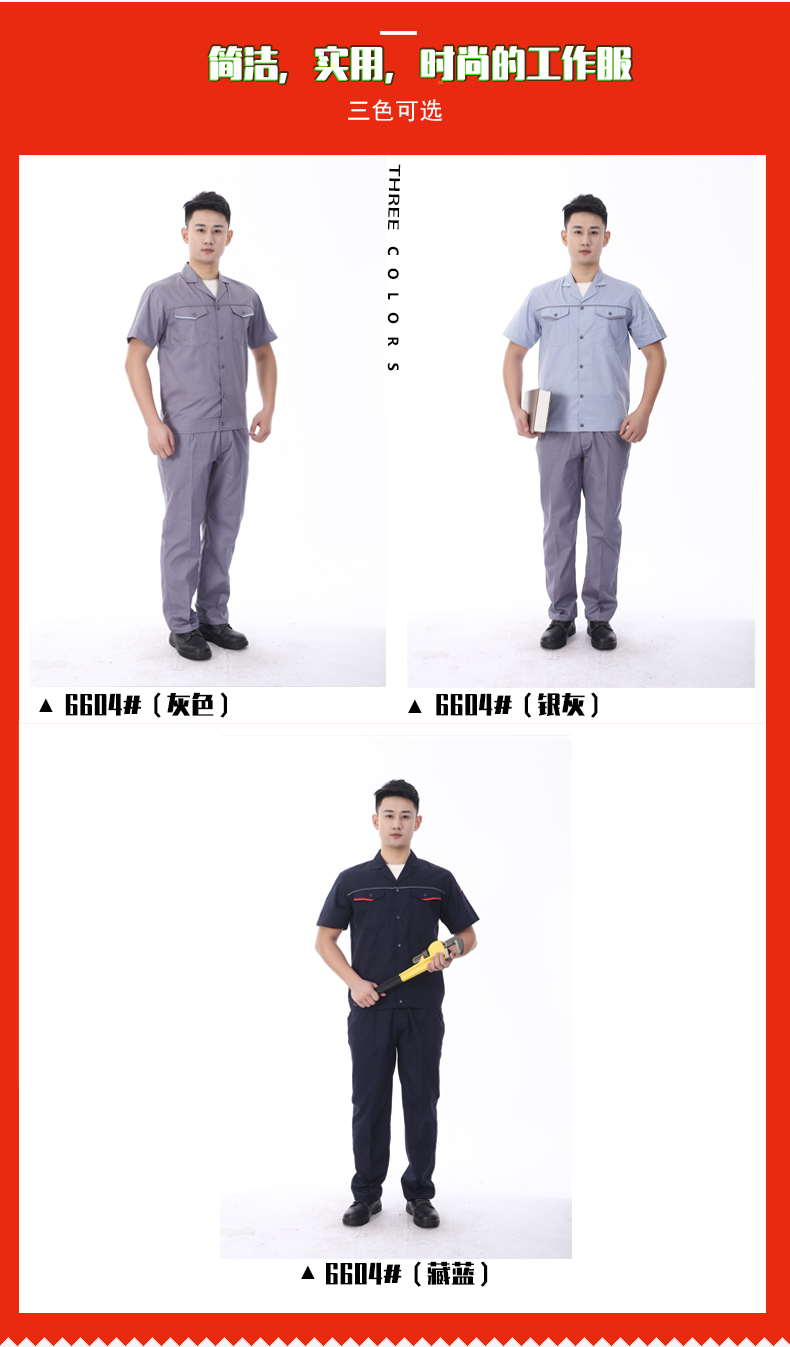 夏裝工作服 短袖工作服 GZFXZ-5 采用滌棉細斜紋面料??钍胶啙嵈蠓?。
