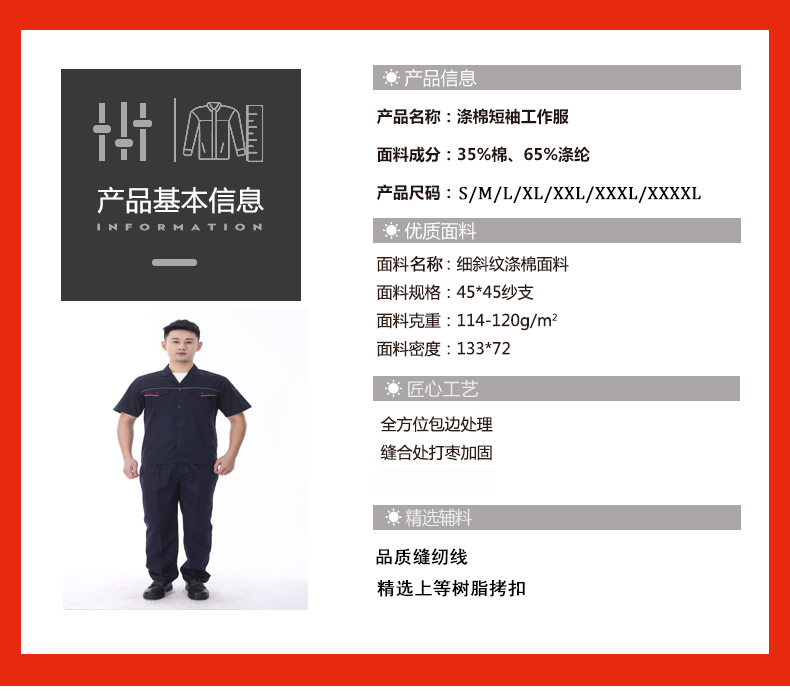 夏裝工作服 短袖工作服 GZFXZ-5 采用滌棉細斜紋面料??钍胶啙嵈蠓?。...