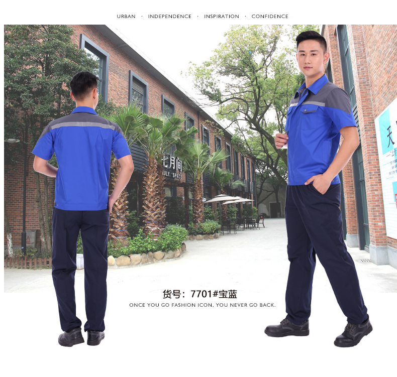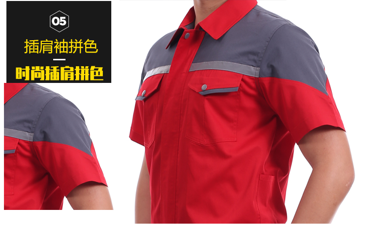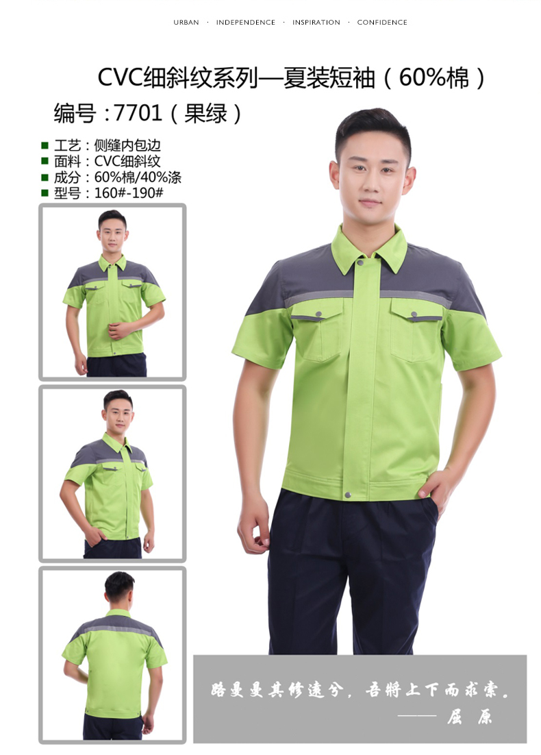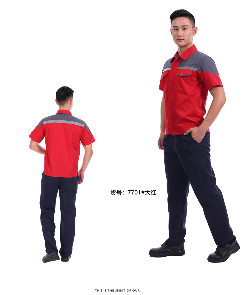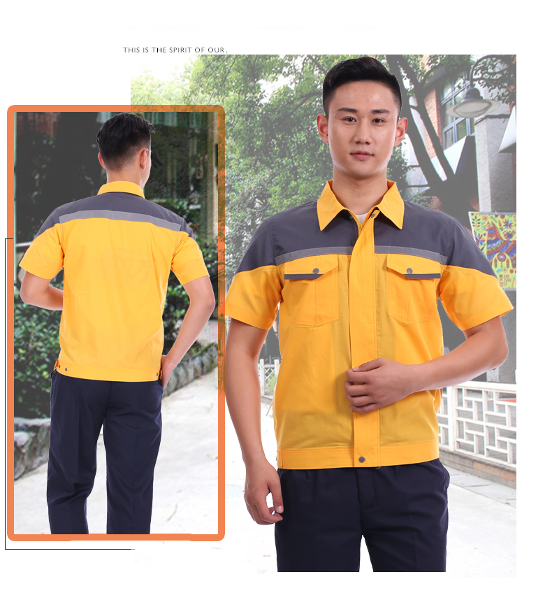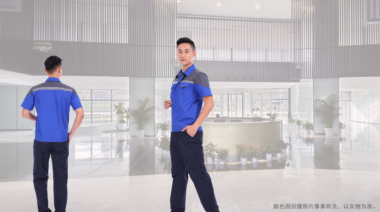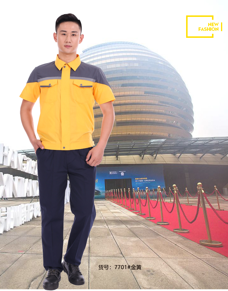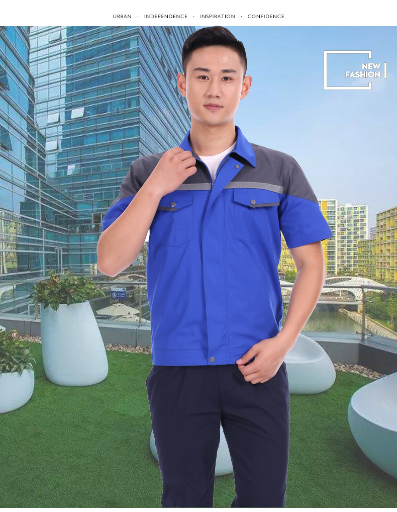 夏裝工作服 短袖工作服 GZFXZ-9 采用CVC細(xì)斜紋面料。多種色系可選,崗位多員工與管理,一眼分辨。