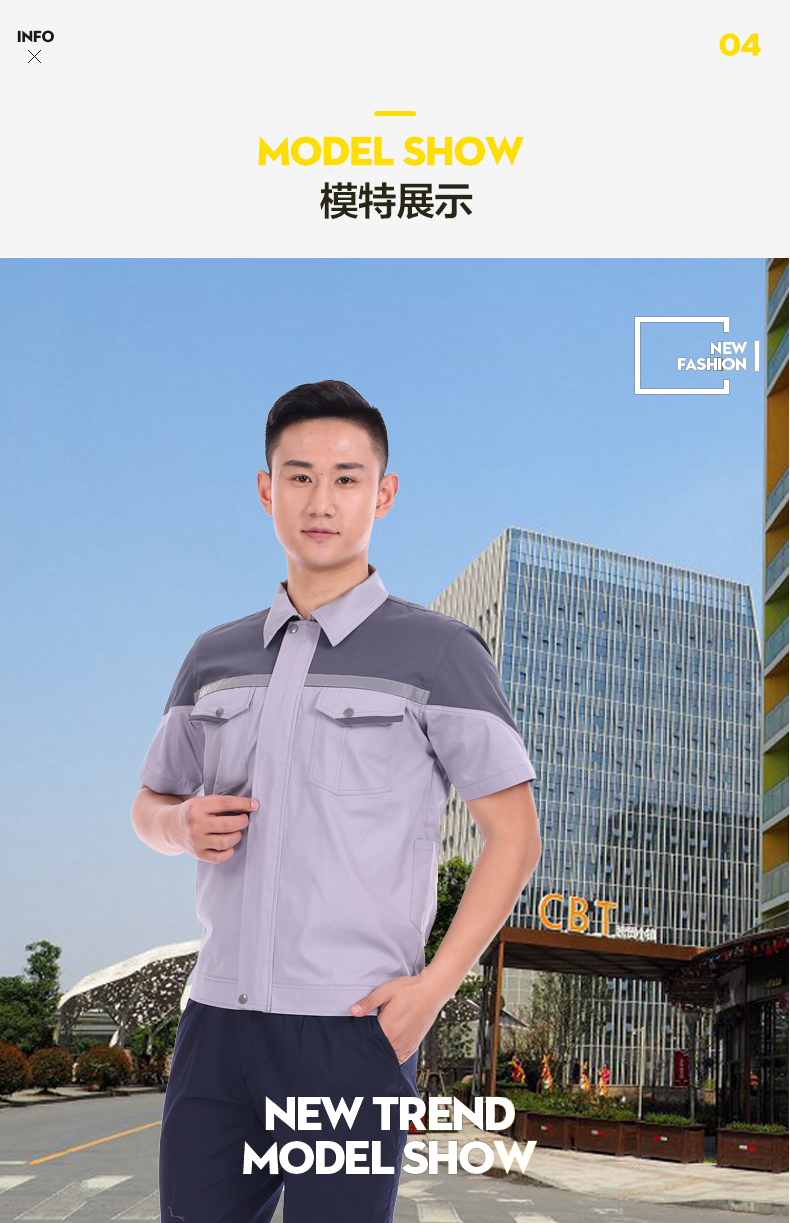 夏裝工作服 短袖工作服 GZFXZ-9 采用CVC細(xì)斜紋面料。多種色系可選,崗位多員工與管理,一眼分辨。...