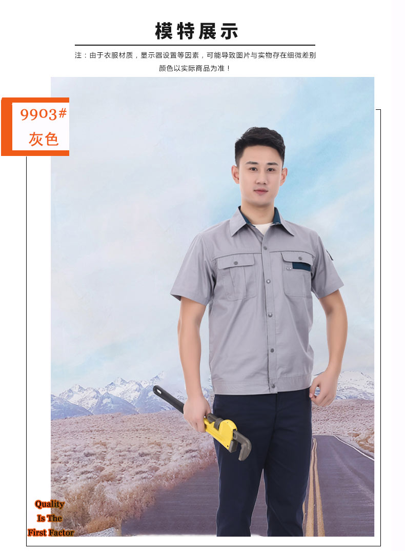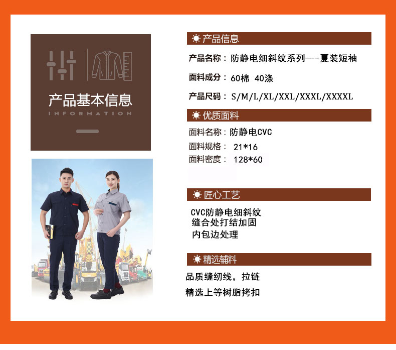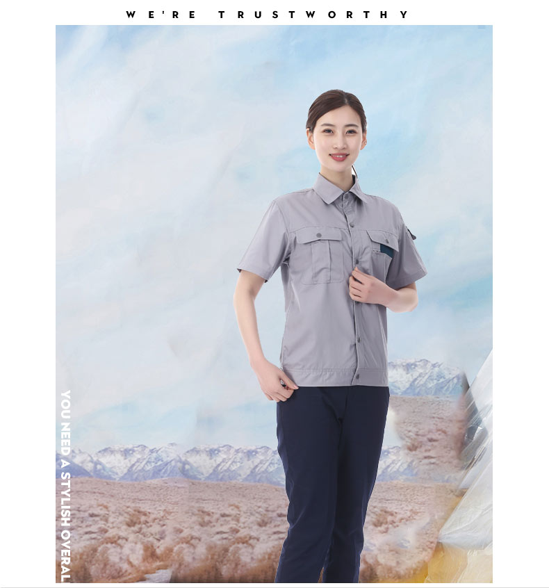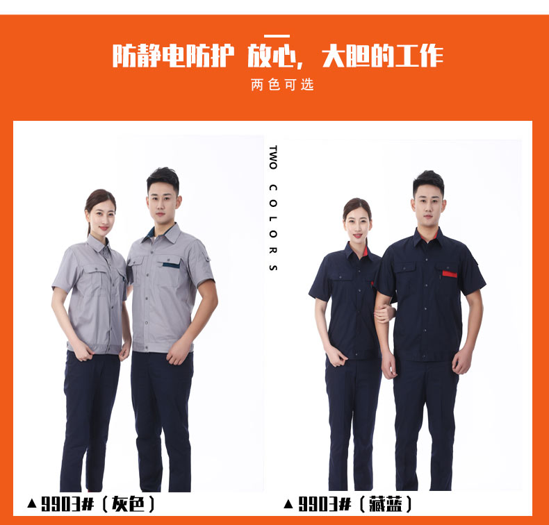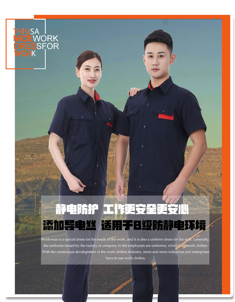 夏裝工作服 短袖工作服 GZFXZ-10, 采用CVC防靜電面料。
