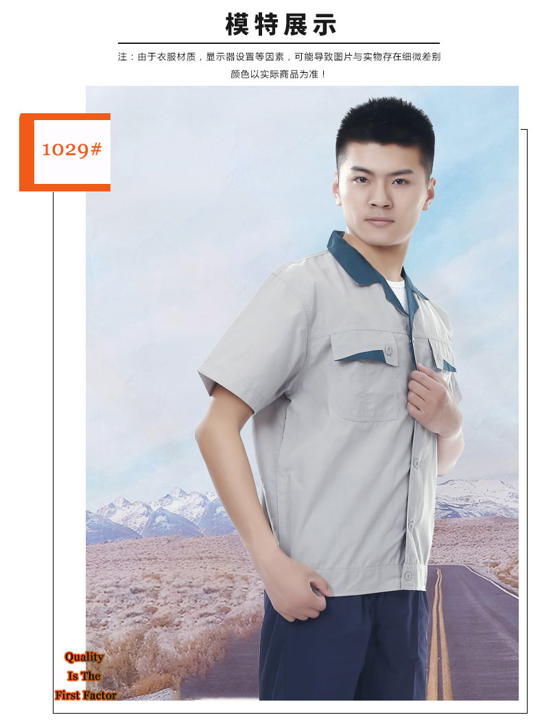 夏裝工作服 短袖工作服 GZFXZ-11,采用滌棉府綢面料,輕薄透氣。褲子是滌棉細斜紋,相對厚實些。...