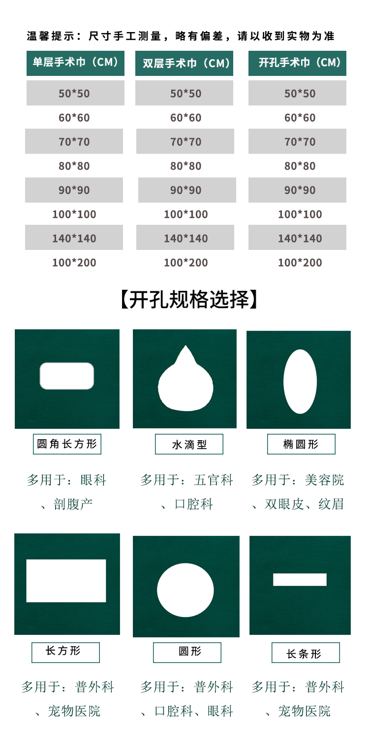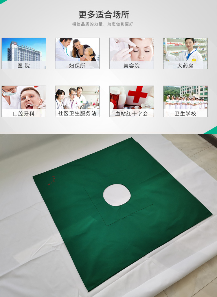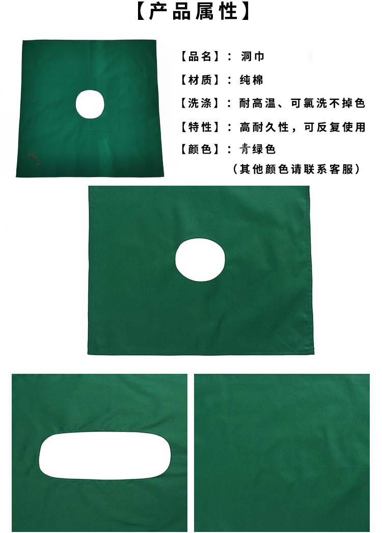 墨綠色洞巾(三甲醫(yī)院專用)各種規(guī)格可以定制,小洞巾,大洞巾,特大洞巾等等,選用三甲醫(yī)院專用面料。耐氯漂,耐高溫。